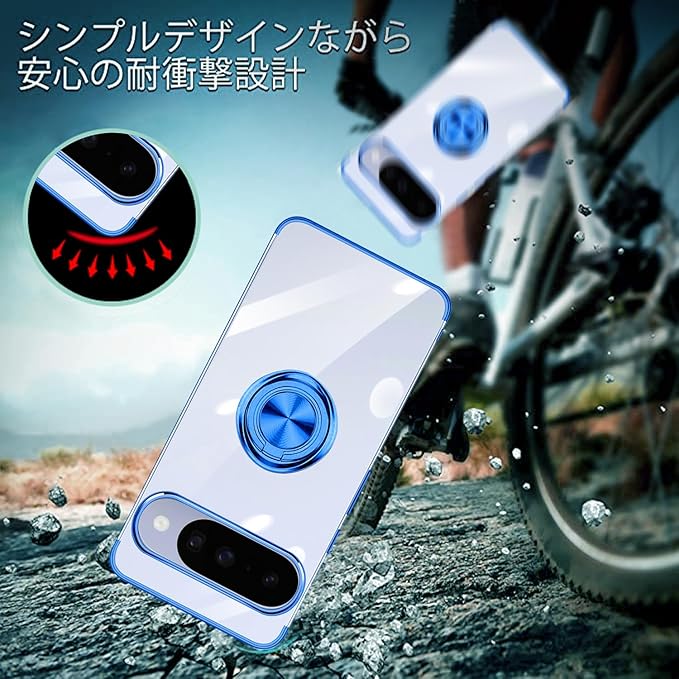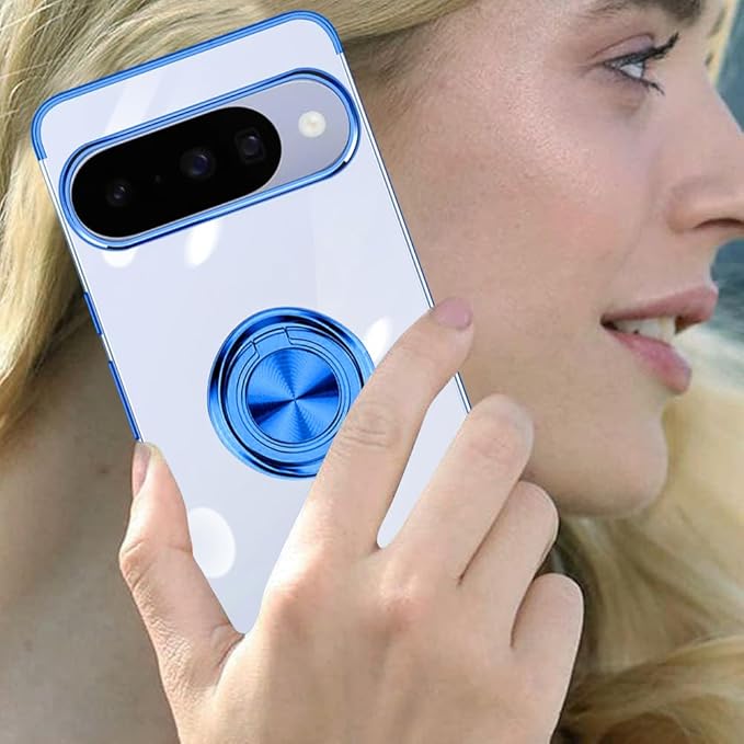 Google Pixel 10 / 10 Pro ケース リング付き クリア Pixel10 / Pixel10Pro ケース 耐衝撃 スタンド機能 ストラップホール付き 軽量 スリム ソフト TPU ピクセル10 / ピクセル 10pro カバー 透明 TPU 擦り傷防止 落下防止 (ブルー)