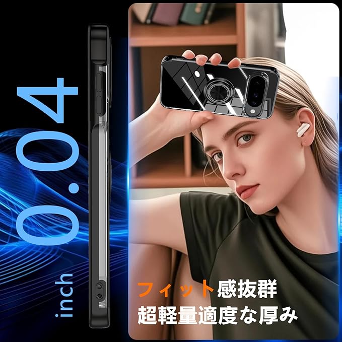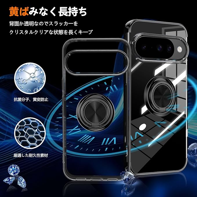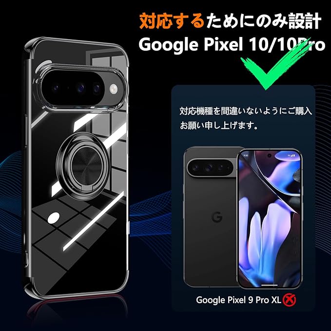 Google Pixel 10 用 ケース Pixel 10 Pro 用 ケース リング付き クリア 耐衝撃 スタンド機能 透明 TPU 車載ホルダー対応 落下防止 防塵 薄型 軽量 一体型 変形防止 保護カバー ピクセル 10/ピクセル 10 Pro 用 カバー 黒 W-YXZH-86-01