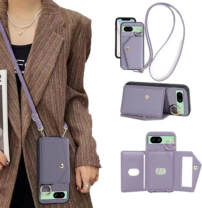 Google Pixel 10 ケース 手帳型 ピクセル10 Pro ケース 手帳型 グーグルピクセル10 財布型 ショルダー 背面カード収納 化粧鏡 スマホケース Googleピクセル10 ピクセル10携帯カバー GooglePixel10ケース スタンド機能 ストラップ 肩掛け 鏡付き - 紫