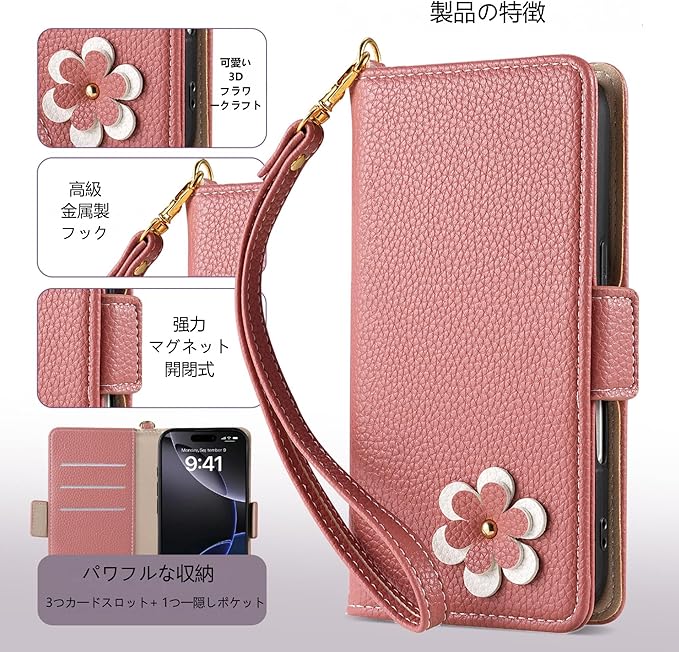 ① Google Pixel 10 ケース 手帳型シンプルかつ洗練されたデザインで,可愛い3Dフラワークラフト 手触りも色合いも高級感あふれる,見た目やデザインともすごく高級感が溢れている。②グーグルピクセル10 ケース シェルは高品質なPU合成皮革を使用し、質感 手触りにも優れています,放熱性や耐衝撃が良く、耐衝撃 耐摩擦 汗や指紋防止塵、埃が入るのも防ぎます;インナーシェルはソフトなTPU素材で、着脱しやすい、縫製も一つずつ丁寧に仕上げられて、落ち着いてる色と合わせて、どんな場合でも相応しいし、プレゼントにもオススメできる手帳型です。③Pixel 10手帳カバーストラップホールは上下に二つあり、ハンドストラップ付き、お好きな使い方をオプションできる。指先に通して使うのに適した長さで、落下事故の予防になります。ネックスストラップは長時間の仕事で手を解放したい時と旅行する時にオススメ。
