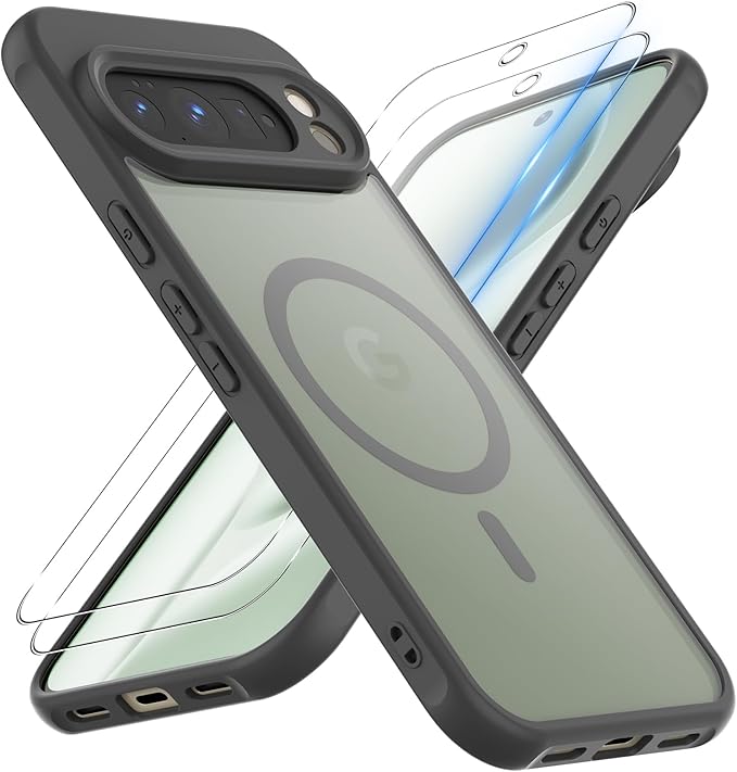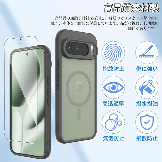 【1個+2枚セット】For Google Pixel 10 Pro XL ケース(1個 MagSafe 対応)+ガラスフィルム(2枚) Pixel 10 Pro XL 対応 保護ケース Greerass ガラスフィルム付き 薄型 超軽量 耐衝撃 擦り傷防止 指紋 汚れ防止 手触り良い 着脱簡単 (ブラック)