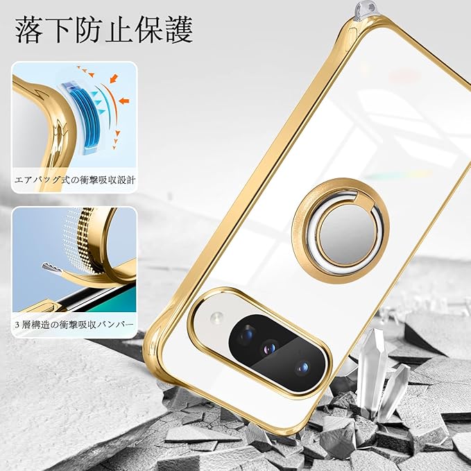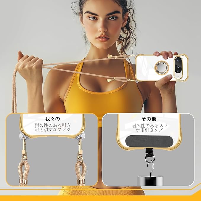 Google Pixel10 ケース クリア pixel 10 カバー ネック リング付き ショルダー Google Pixel 10 Proケース 耐衝撃 対応 グーグルピクセル10 スマホケース 肩掛け 斜めかけ 縄掛けカバー 透明 TPU ストラップ付き 薄型 軽量 紐付き ネックストラップ ショルダー 肩掛け 縦/横 2WAY 長さ調整可能 取り外し可能 落下防止(ゴールド)