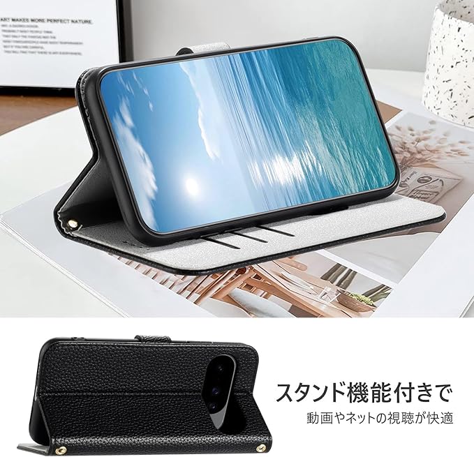 Deeaar Google Pixel 10 ケース手帳型 人気 スマホケース ピクセル 10ro 財布型 カバー カードポケット付き 軽量 薄型 全面保護 贈り物 Pixel10 カード収納 スタンド機能 横置きスタンド機能 高級PUレザー 上質な手触り 擦り傷防止 ケース (Google Pixel 10/10 Pro 6.3 inch対応) - ブラック