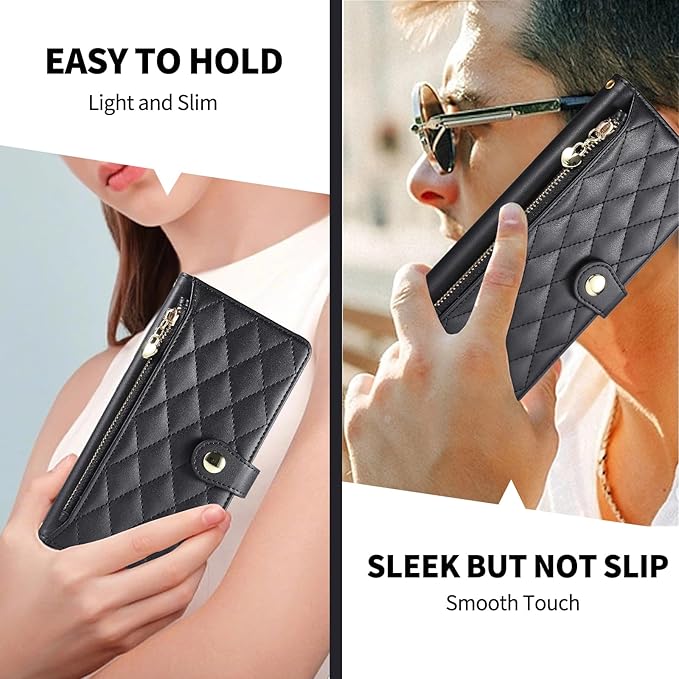 【上質な素材】Pixel10 Pro XL ケースは高品質のPUと柔らかいTPU素材を採用し、360 全方位保護、快適な手触り、優れた放熱性と衝撃吸収性、耐久性と保護性を両立しています。繊細なステッチ、手触りと質感を兼ね備えたゴールドのメタルジッパー、高品質のメタルマグネットクラスプ、開閉が簡単、豪華でシックなデザイン、あなたのファッションセンスを高めます。