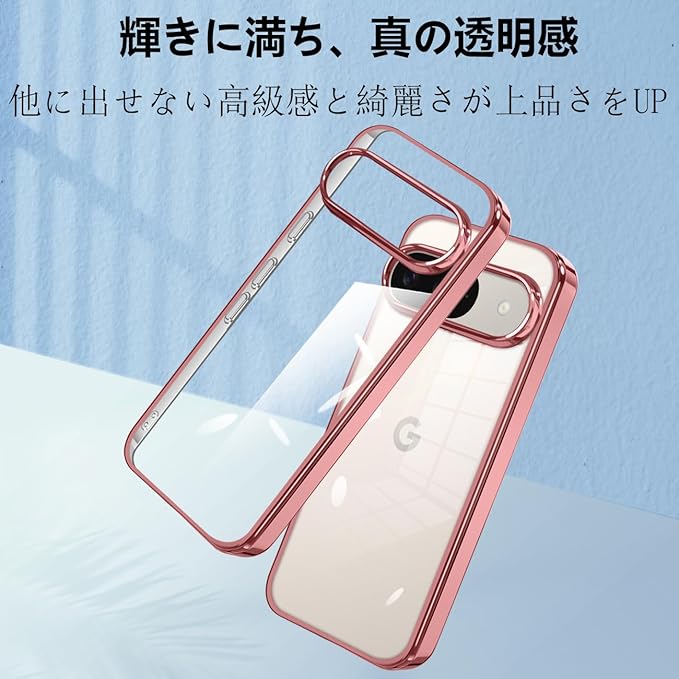 google Pixel 10 / Pixel 10 Pro ケース クリア グーグル ピクセル10 カバー スマホケース 耐衝撃 可愛い 人気 おしゃれ 透明 かわいい スマホカバー 薄型 背面ケース tpu 軽量 ストラップホール付き(ローズゴールド)