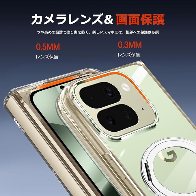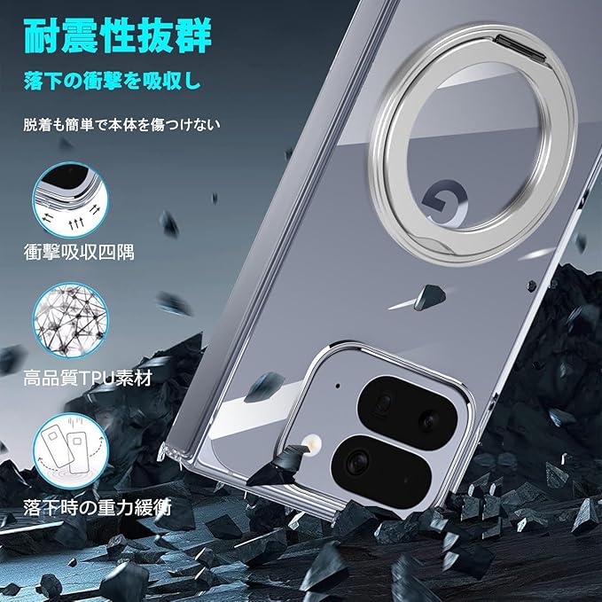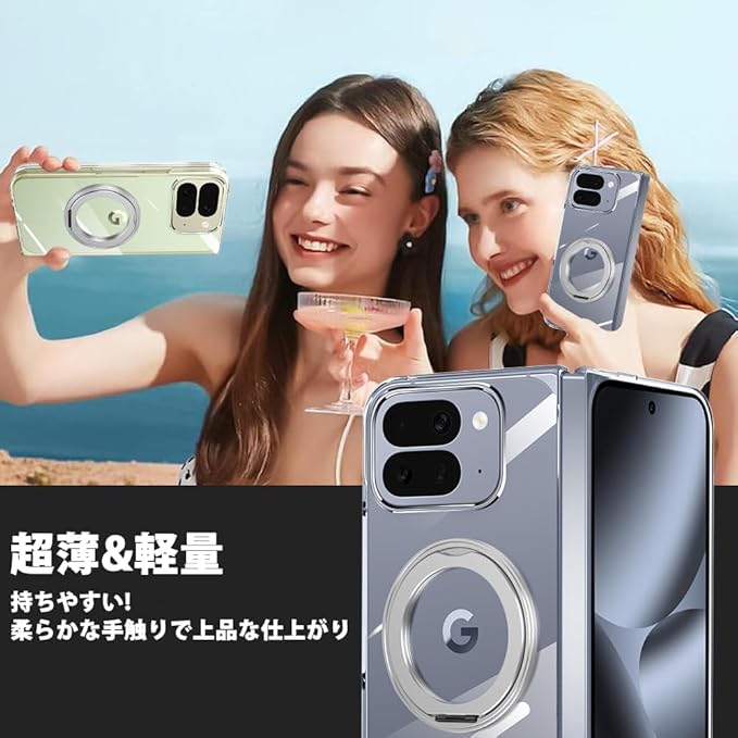 Google Pixel 10 Pro Fold 用 ケース クリア 透明 マグセーフ リング付き スタンド機能 縦横両対応 マグネット搭載 薄型 TPU シリコン 軽量 落下防止 衝撃吸収 保護カバー ソフトケース 人気 カバー 耐衝撃 全面保護 おしゃれ(クリア)