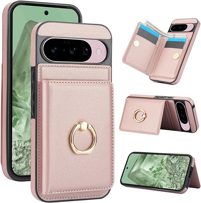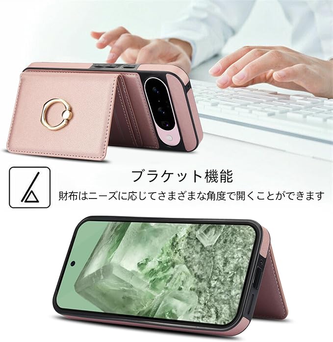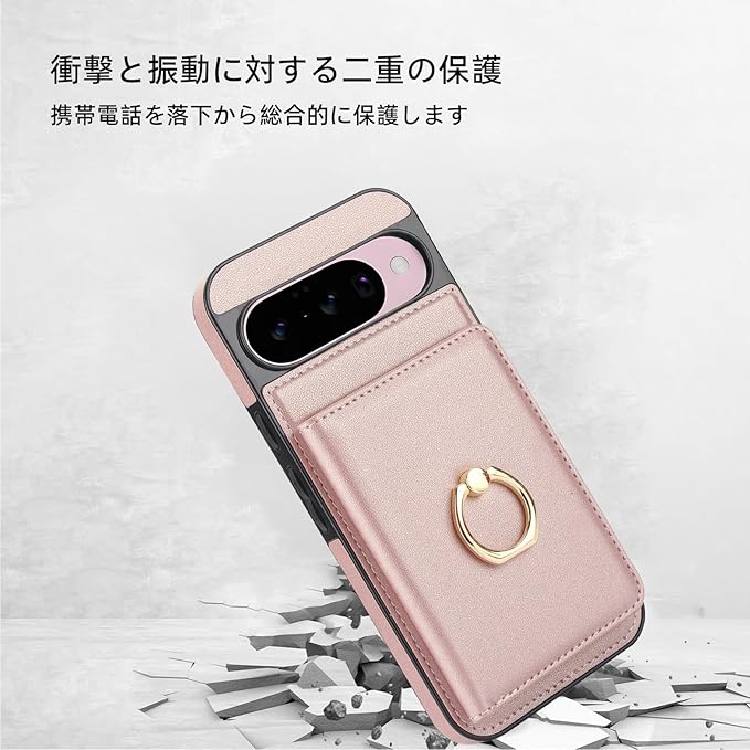 Noaivoky 適用 Google Pixel 10 / 10 Pro ケース 手帳型 グーグルピクセル10 ケース リング 背面カード収納 スマホケース ピクセル10 プロ スタンド機能 携帯ケース Pixel10 リング付き ぐーくるぴくせる10 レザー RFID googleピクセル10 おしゃれ Pixel10pro カバー ピクセル10pro 防水 耐摩擦 耐衝撃 -ゴールデンピンク