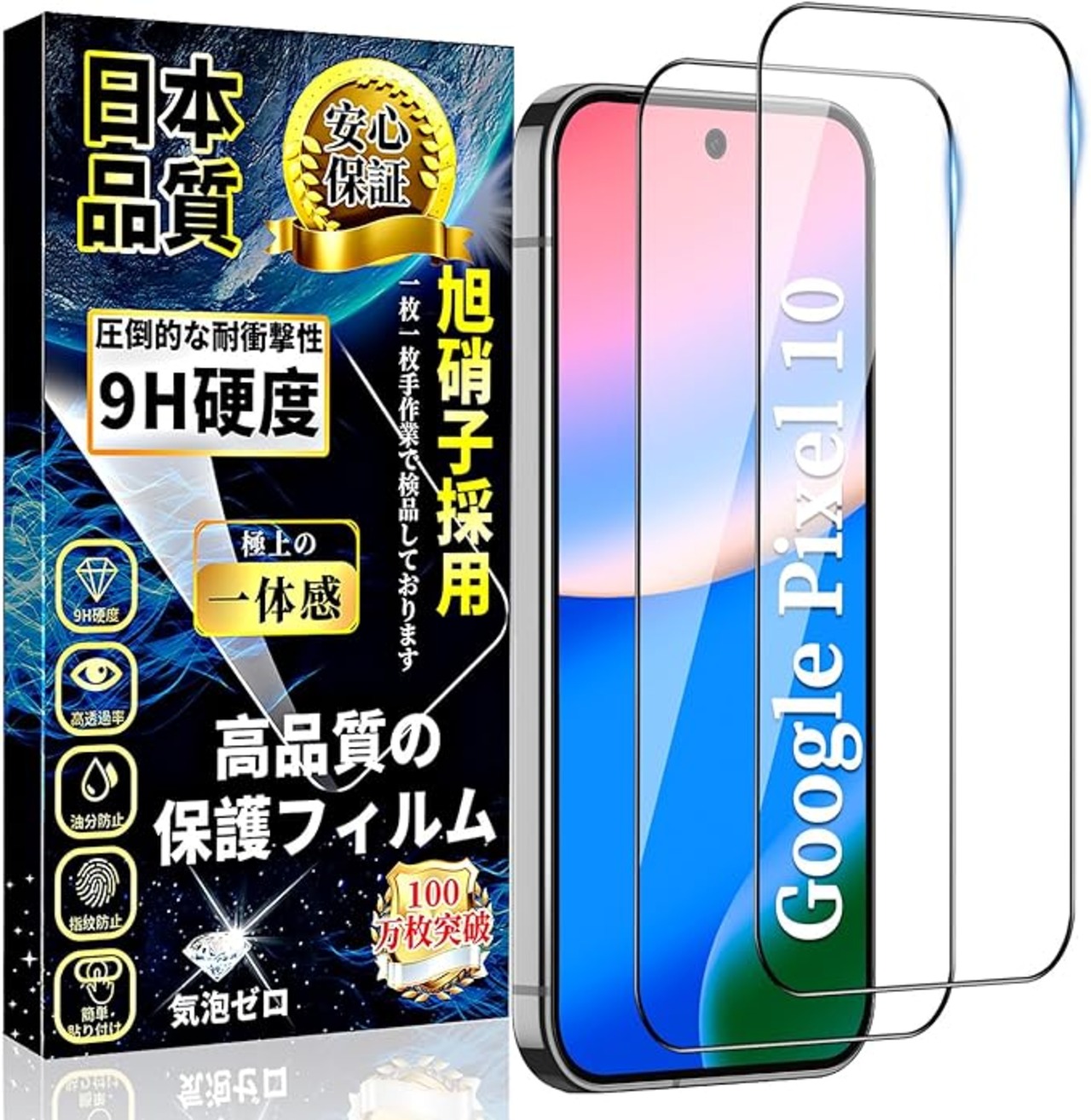 対応 Google Pixel 10 全面保護 ガラスフィルム グーグル ピクセル10 液晶保護フィルム Pixel10 強化ガラス【2枚入り】日本製旭硝子製 高透過率 硬度9H 飛散防止 気泡防止 衝撃吸収 撥水撥油 自動吸着