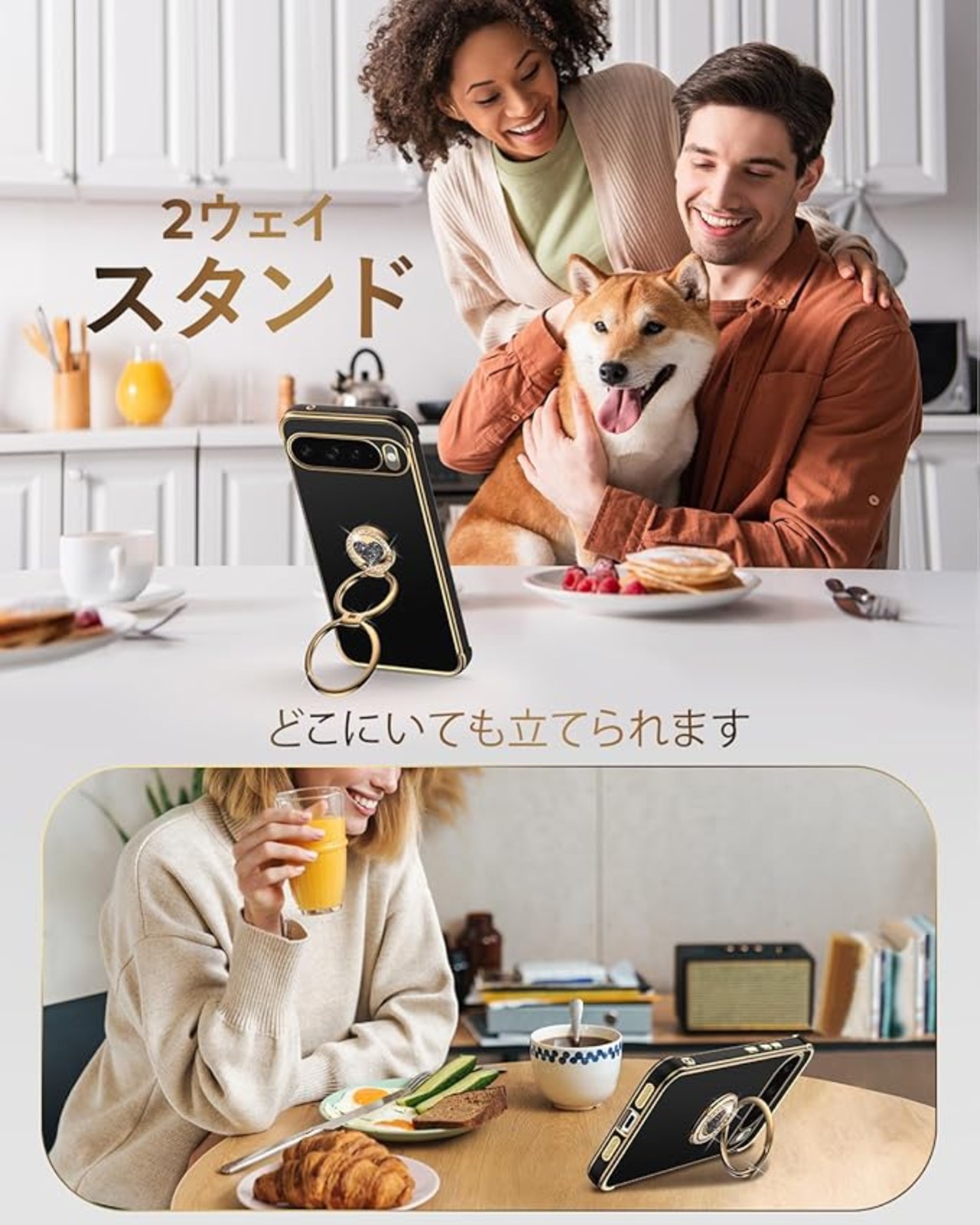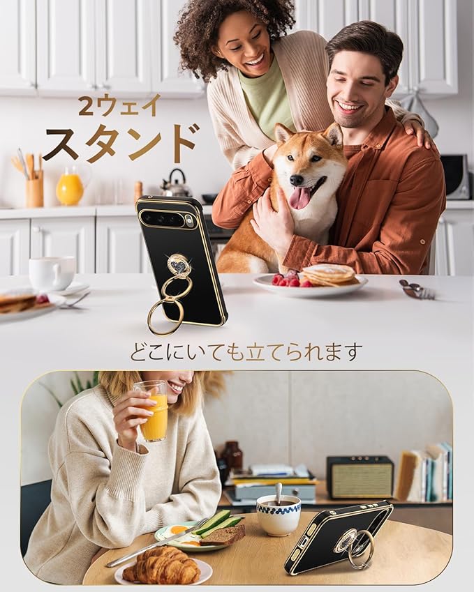 【2ウェイ360 リングスタンド】このPixel 10用ケースは、180 折り畳み、360 回転できるハート型のリングが特徴です。このダブルリングスタンドは、複数の角度を調整でき、縦向きと横向きの両方のモードをサポートします。安定しており、読書、サーフィン、映画鑑賞、FaceTimeをするときに快適です。