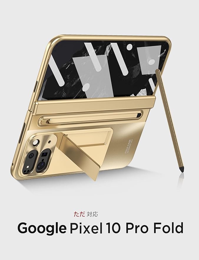 Miimall 対応 Google Pixel 10 Fold ケース ペン付き Sペン 収納 スタンド ガラスフィルム 薄型 ヒンジ保護 カバー 全身保護 case バンパー 汚れ防止 レンズ保護 保護ケース スマホカバー ピクセル10 プロ フォールド 携帯ケース (こんじき)