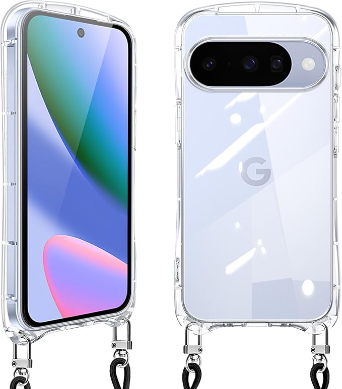 Google Pixel 10/10 Pro ケース ショルダー クリア ピクセル10/10Pro スマホケース カバー 全透明 耐衝撃 肩掛け 首掛け 可愛い かわいい 韓国 透明 TPU 長さ調整可能 取り外し可能(クリア)
