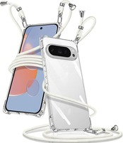 Google Pixel 10/Pixel 10 Pro 用 ケース クリア ショルダー ピクセル10 カバー 肩掛け 斜めかけ 縄掛けケース 透明 薄型 軽量 TPU 携帯ケース 紐付き 織りストラップ付き 長さ調整可能 取り外し可能 落下防止 紛失防止(ホワイト)