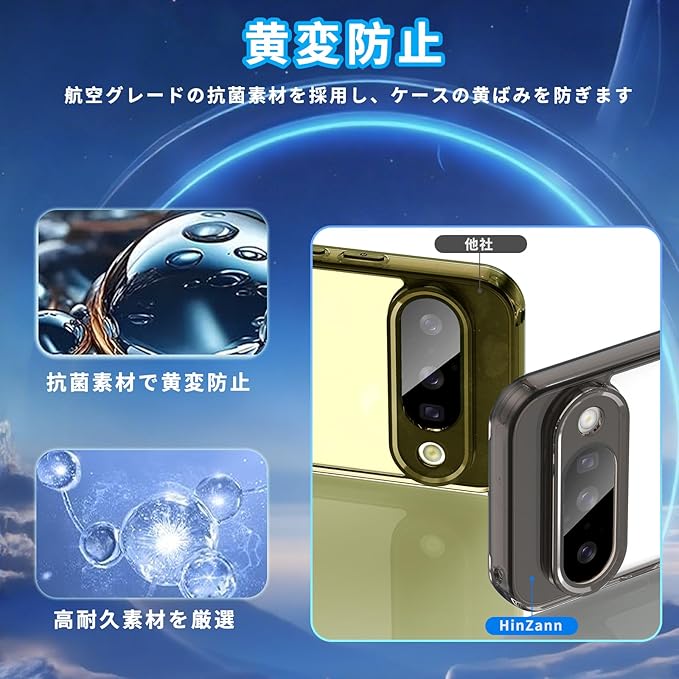 [5D全透明バックプレート]TPU透明ケースは99%の透過率を実現し、Google Pixel 10の美しいボディデザインを忠実に再現。航空機級の黄変防止素材を採用し、特殊コーティング処理を施しているため、紫外線・汗・経年劣化による変色や黄ばみを防止。長期間使用しても透明で美しい状態を保ちます。