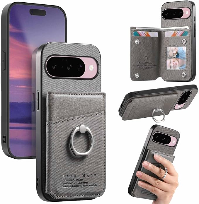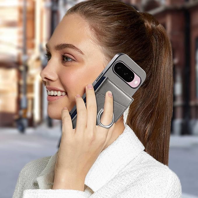Dahimomo For Google Pixel 10 ケース 手帳型 ピクセル10 ケース カード収納 背面 スマホケース グーグルピクセル10 財布型 リング付き スタンド機能 RFIDブロッキング 耐摩擦 耐衝撃 シンプル リング おしゃれ - グレー