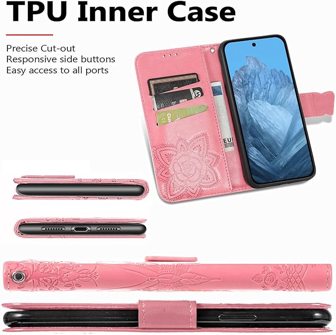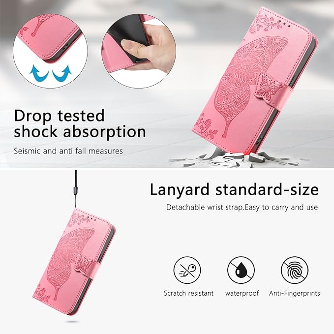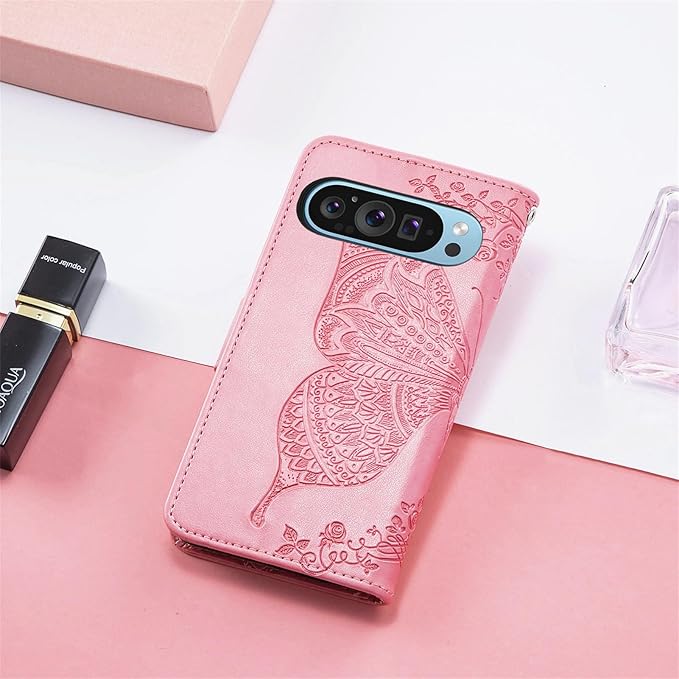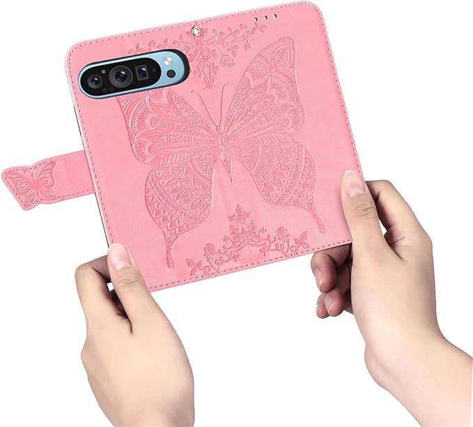 Google Pixel 10 / 10 Pro 用の ケース 手帳型 グーグルピクセル10/10 プロ 用の 携帯 背面 スマホカバー 財布型 蝶柄 衝撃吸収 360度保護 女性向け PUレザー マグネット スタンド機能付き カード収納 軽量 純色 バタフライ エンボス加工 女性 可愛い花柄 着脱しやすい ピンク PIX10-DIE