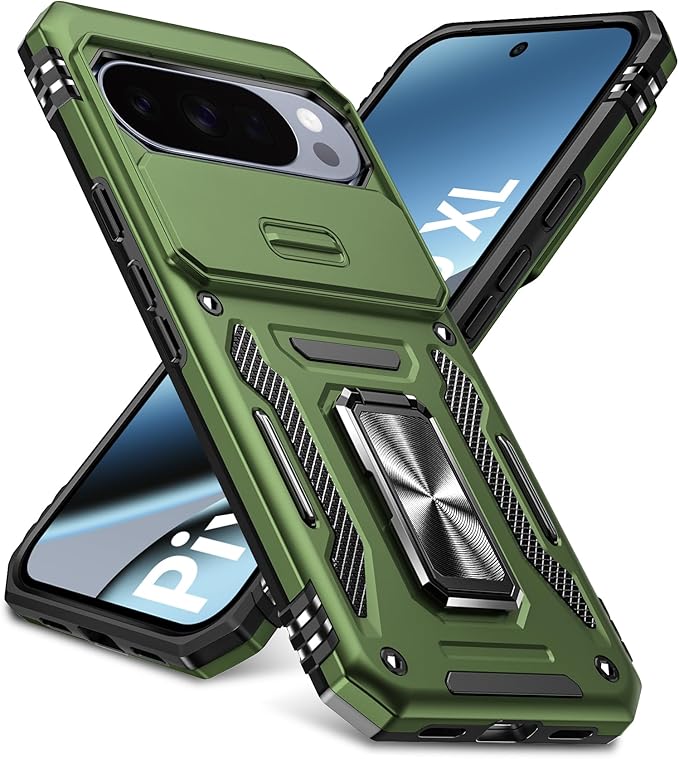 PNEWQNE Google Pixel 10 Pro XL 用ケース リング付き 衝撃吸収 耐衝撃 スタンド機能 米軍MIL規格 グーグル ピクセル10 pro xl 用ケース 全面保護 360 回転 滑り落ちにくい 人気 おしゃれ 携帯カバー 緑 WY100-25