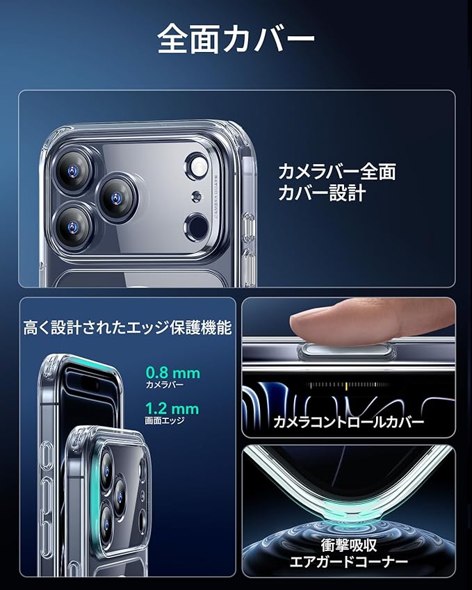 【カメラコントロールカバー】ESR iPhone 17 Pro ケースのカメラコントロールに完全対応です。クリック、押し込み、スワイプによる迅速かつ正確な写真調整が可能で、スムーズな使用感を実現します