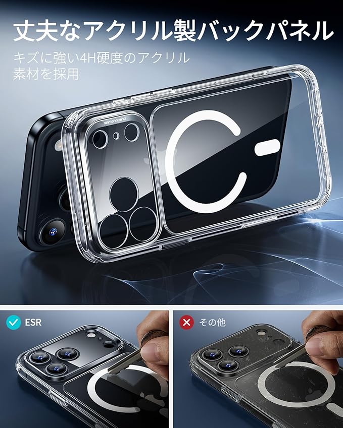 【3倍米軍MIL規格・MagSafe対応】ESR iPhone 17 Pro ケース 米軍保護工学 ワイヤレス充電/25Wの高速充電に対応 傷に強い背面 衝撃吸収 耐黄変 いPhone17Pro ケース エアガードガードコーナー カメラコントロールカバー ストラップホールあり iPhone17Pro用 ハイブリッドシリーズ クリア