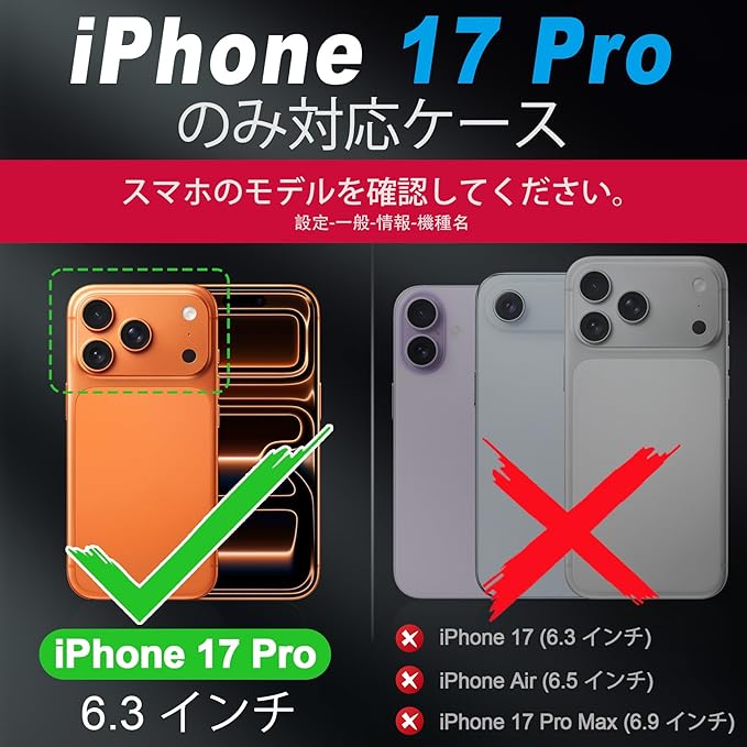 対応電話モデル iPhone 17 Pro(6.3インチ、2025年発売), あいふぉん 17 プロ, アイホン 17 プロ