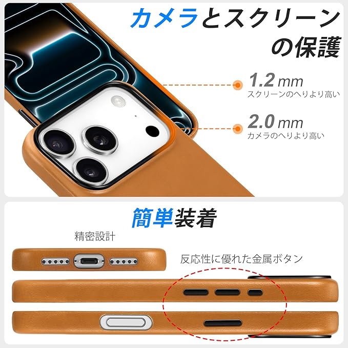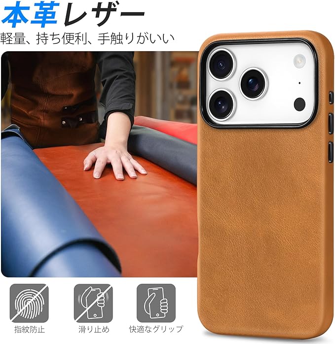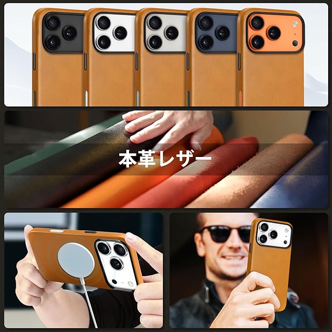 SHIELDON iPhone17Pro 対応 ベーシックケース 本革レザー 6.3インチ 5G 薄型 ワイヤレス充電対応 磁気充電可 背面保護 軽量 滑り止め 指紋防止 耐久性 カメラ保護 携帯便利 アイホン 17プロ 対応 スマホカバー 2025年発売 レトロライトブラウン