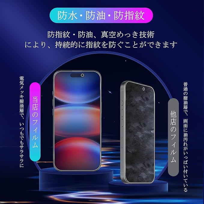 特徴 ①業界最高硬度9H、耐衝撃 ②目の疲れ軽減 ③スクラッチ防止、飛散防止④自動吸着、貼り付け簡単⑤気泡のない防止⑥撥水撥油、指紋防止⑦超高タッチ敏感度⑧超高透明感⑨ケースに干渉しにくいサイズ⑩超耐久