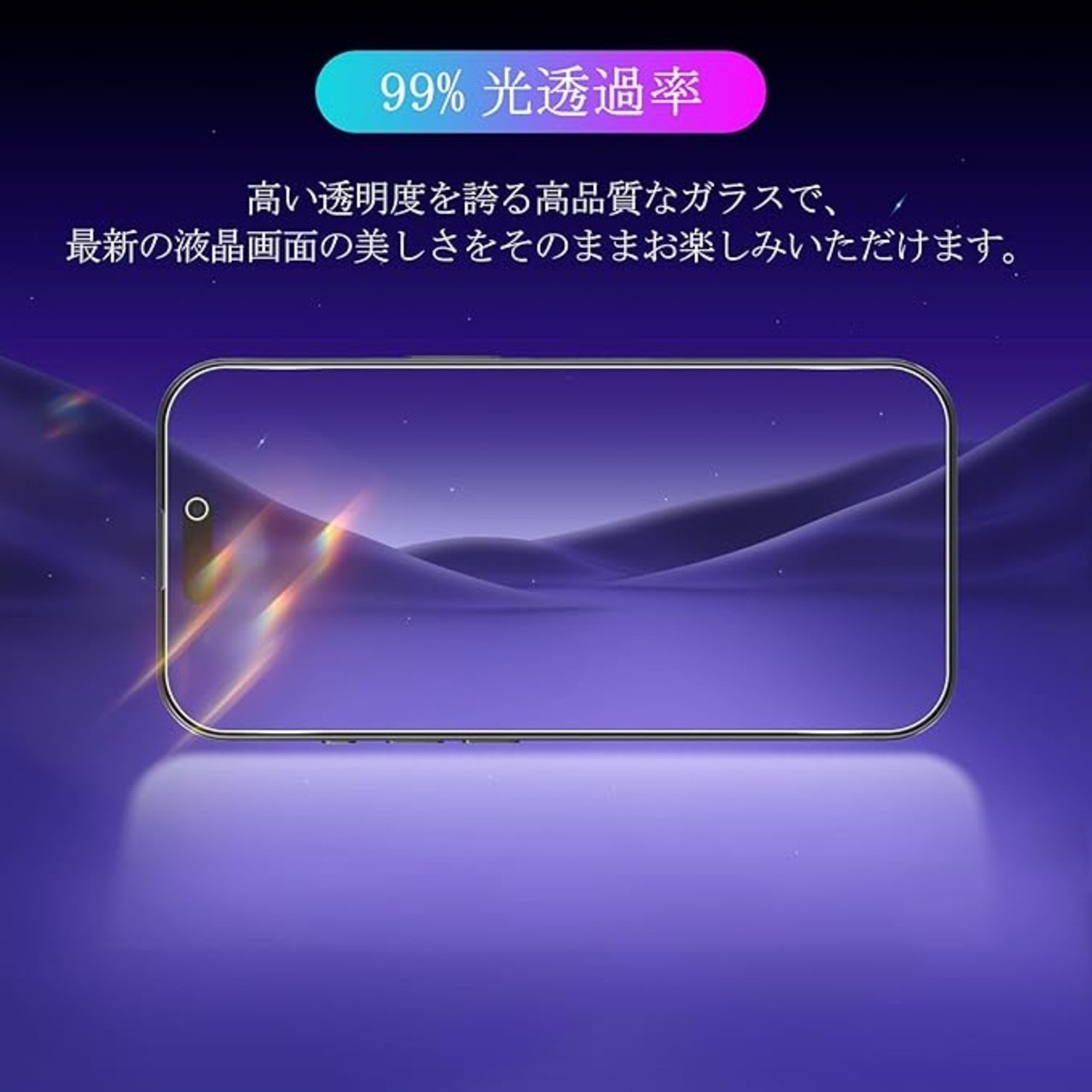 ☺☞【ブルーライトカット】iPhoen 17 pro 強化フィルムのコアにブルーライトカット反射技術を加え、ブルーライトカット率93%に達し、ブルーライトによるダメージを大幅に軽減し、色素沈着を防止、効果的に近視を予防できます、ディスプレイを長時間眺める方に効果を発揮します。(このHD透明ブルーライト防止保護フィルムは、室内では透明に見え、太陽光の下でのみ青く見えます。)
