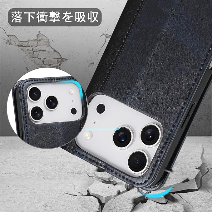 「iPhone17 Pro 専用手帳型ケース」:カバーは高級なPUレザーを採用しており、放熱性や耐衝撃が良く、傷や埃を防ぐことができるiPhone17Proカバーです。インナーケースはソフトタイプなので、スマホの着脱が簡単ですし、角までしっかり保護できるiPhone17Proケースです。