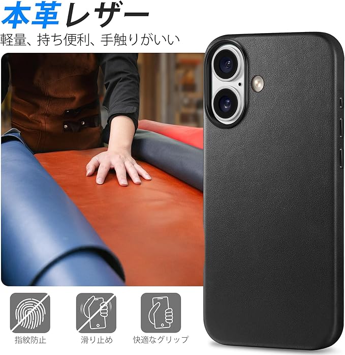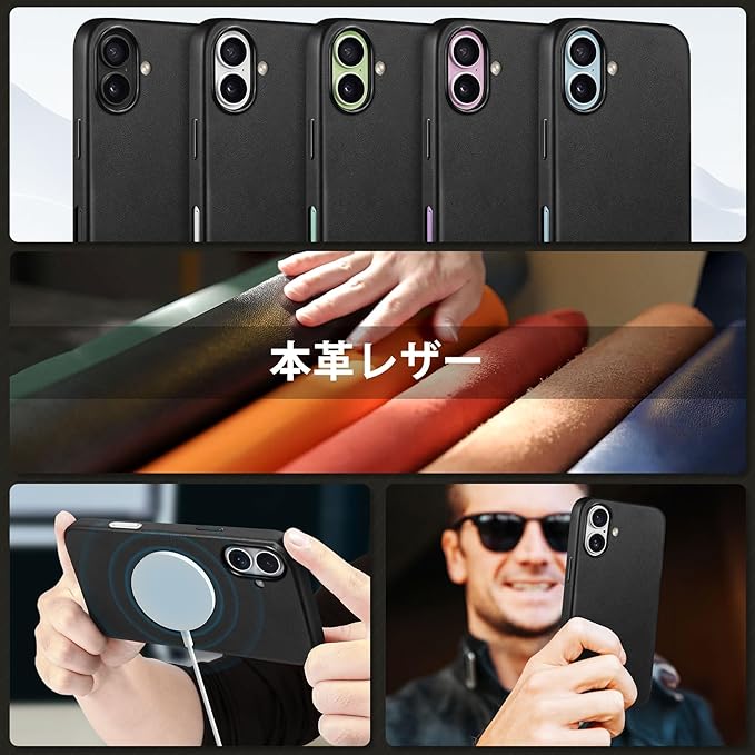 SHIELDON iPhone17 対応 ベーシックケース 本革レザー 6.3インチ 5G 薄型 ワイヤレス充電対応 磁気充電可 背面保護 軽量 滑り止め 指紋防止 耐久性 カメラ保護 携帯便利 アイホン17 対応 スマホカバー 2025年発売 ブラック