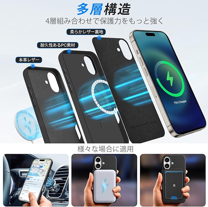 【ワイヤレスと磁気充電対応】軽量かつ極薄のデザインで快適に利用でき、長時間のスマホ使用でも熱がこもりにくく、ワイヤレス充電も可能です。強力マグネットリング内蔵により、マグネットスタンドや磁気式カーチャージャーへの着脱がワンタッチで行えます。放熱構造と軽量素材を採用しているため、動画視聴やゲームプレイ時にも快適です。