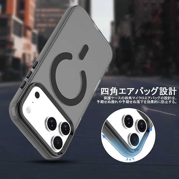 For iPhone 17 Pro 用 ケース TPU+PC素材 半透明 磨砂 保護カバー アイフォン 17 Pro 磁気吸着 軽量 薄型 衝撃吸収 スマホケース 滑り止め 擦り傷防止 iphone 17 pro 全面保護 ケース(黒)