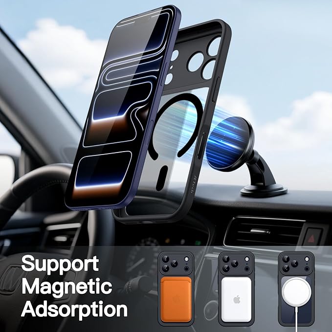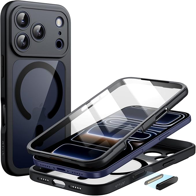 JETech iPhone 17 Pro 6.3インチ用 ケース 強化ガラスフィルム内蔵 カメラコントロールボタン MagSafeに対応 360度フルボディカバー (ブラック)