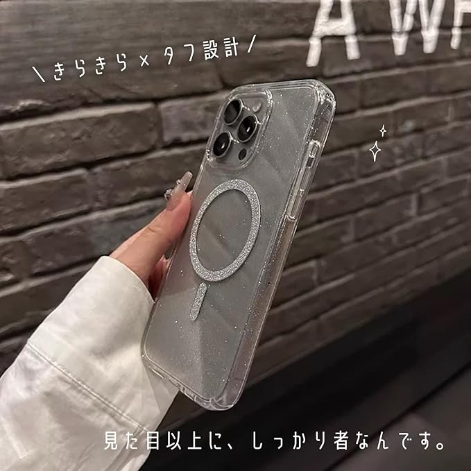 【可愛い顔して守備力高め】saymi's きらきら ラメ 韓国 iPhone17pro ケース MagSafe対応 クリア 上品シルバー パウダーラメ 美人映え ハードタイプ (iPhone17pro)