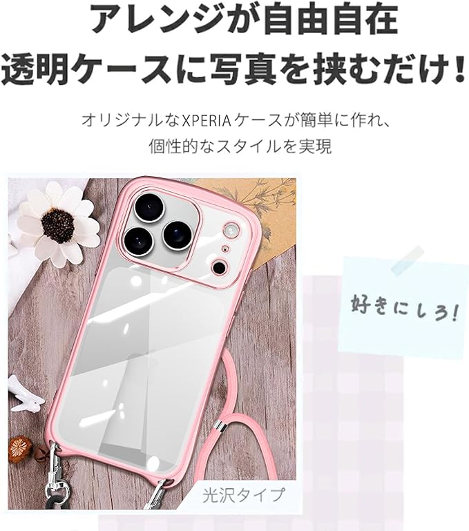iPhone 17 Pro 用 ケース クリア ショルダー いphone17 プロ スマホケース アイフォン17pro カバー 耐衝撃 肩掛け 首掛け 可愛い かわいい 韓国 透明 TPU メッキ加工 TPUバンパー 長さ調整可能 取り外し可能(ローズゴールド)