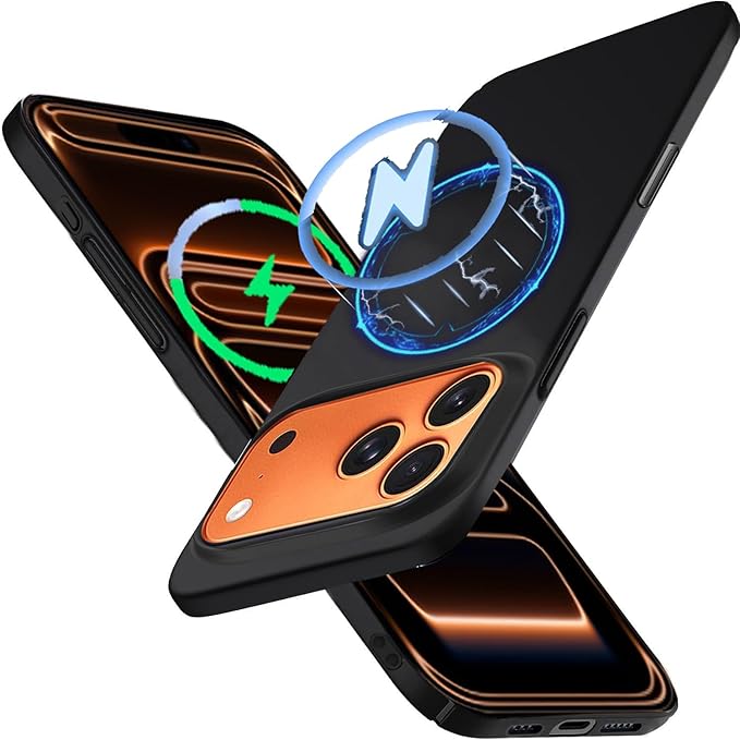 Wojiaozvlf 極薄 iphone17promax用 ケース Magsafe対応 薄型 マグネット搭載 iphone 17 pro max用 ケースPCマット質感 超軽量 黄変防止 指紋防 擦り傷防止 手触り良い 全面保護 超耐磨 耐衝撃カストラップホール付きアイフォン17promax用 カバー ワイヤレス充電対応 カバー ブラック