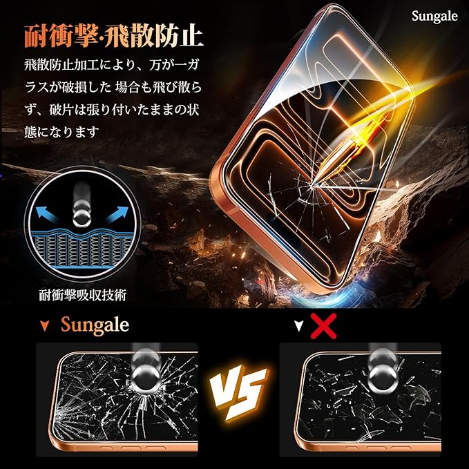 【硬度9H・飛散防止】 日本製素材旭硝子製を採用しております。業界最高レベルの9H硬度、ハードコーティング技術により外部からの衝撃をフィルムが吸収し、衝撃を緩和し画面の破損を最低限まで抑えます。特殊な飛散防止設計により、万一割れてしまった際にも飛散することなく、高い安全性を実現しました。