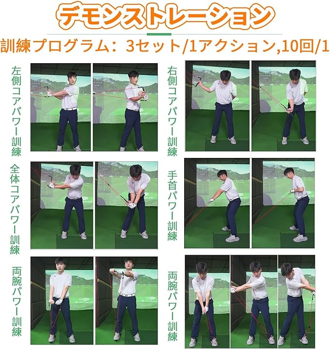 【スイングリリースをより上達】本製品は弾力が優れたラテックスを使って、スイング練習の時に、弾力帯の抵抗力を感じながら、体の回転で力を発するという正しい発力順番を身につけます。繰り返し練習を通じて、スイングのマッスルメモリーを増強し、安定なスイングシステムを構築、より正確なスイングができます。