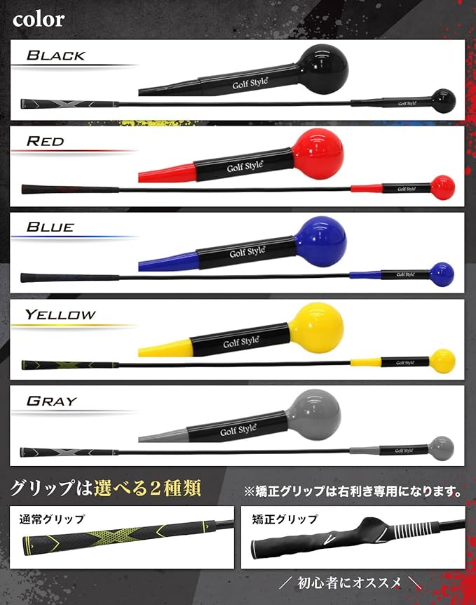 GolfStyle ゴルフ練習器具 スイングトレーナー トレーニング器具 スイング練習 素振り ゴルフ練習用品 室内 屋外 素振り 飛距離 グリップ 単品