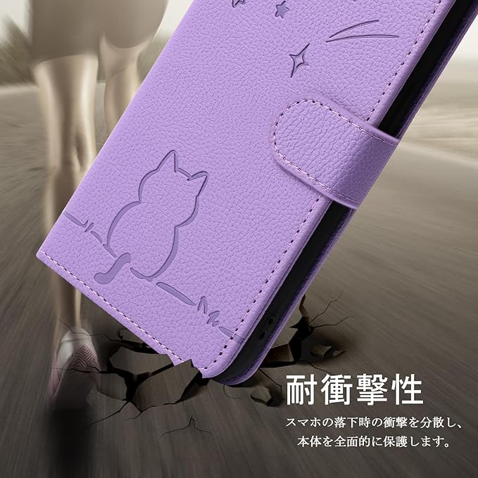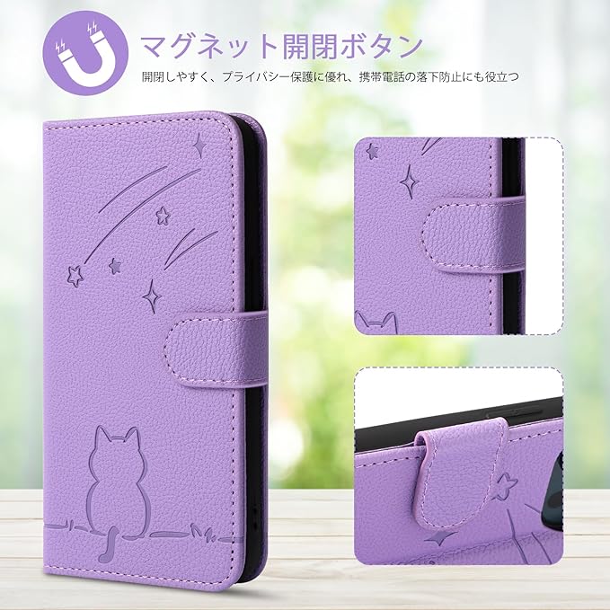 Rosbtib 用の iphone 17 Pro ケース 手帳型 いphone17pro ケース 流れ星子猫 iPhone17Pro 手帳型ケース 可愛い 猫柄 ねこ いphone17 pro ケースカバー 財布型 耐衝撃 アイフォン17プロ 携帯カバー カード収納 iPhone17プロ スマホケース オシャレ 軽量 耐久性 スタンド機能 PUレザー 内蔵マグネット 携帯ケース(パープル)