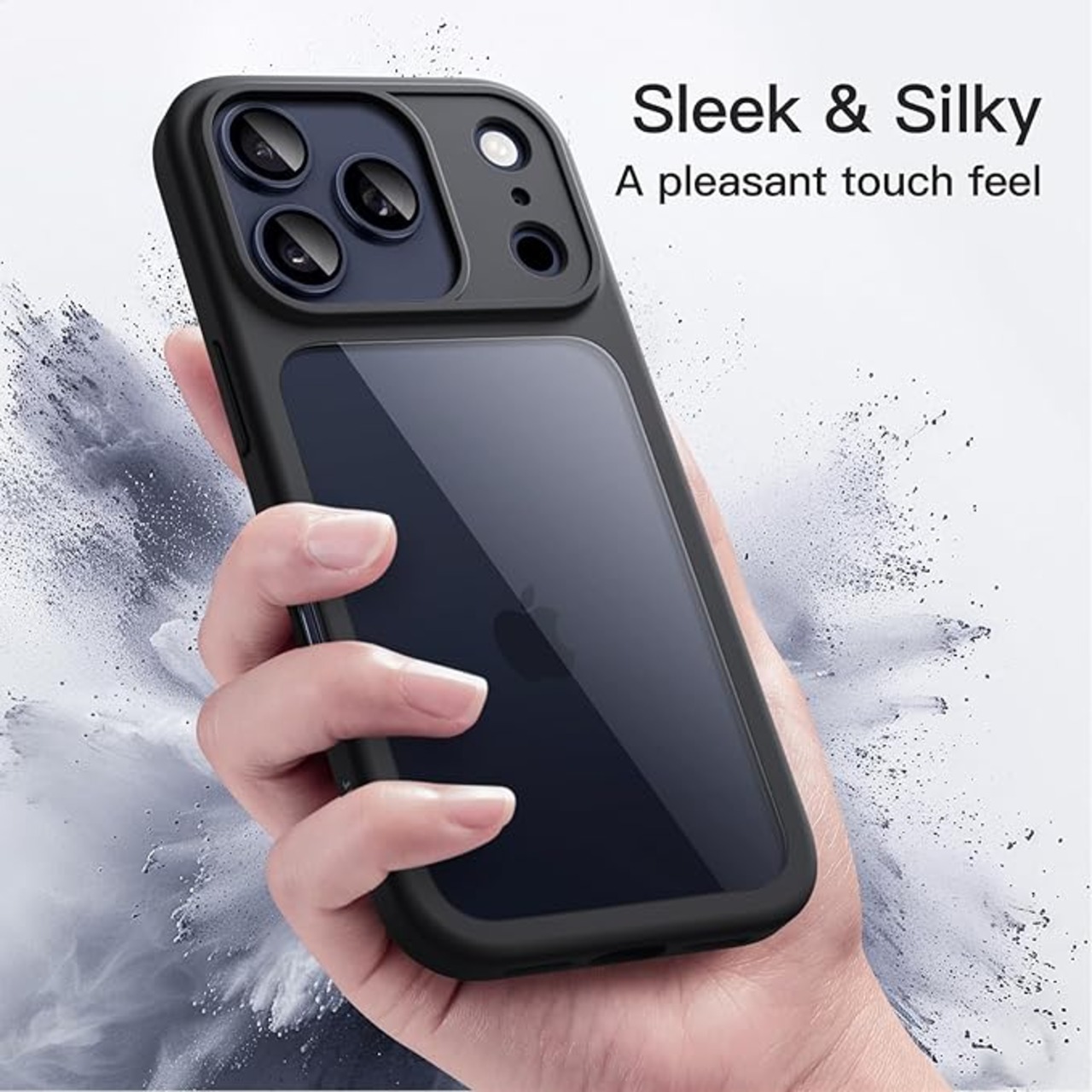 JETech iPhone 17 Pro Max 6.9インチ用 ケース 耐衝撃スマホバンパーカバー ソリッドカラー マットTPUフレーム 傷つけ防止 クリアバック (ブラック)