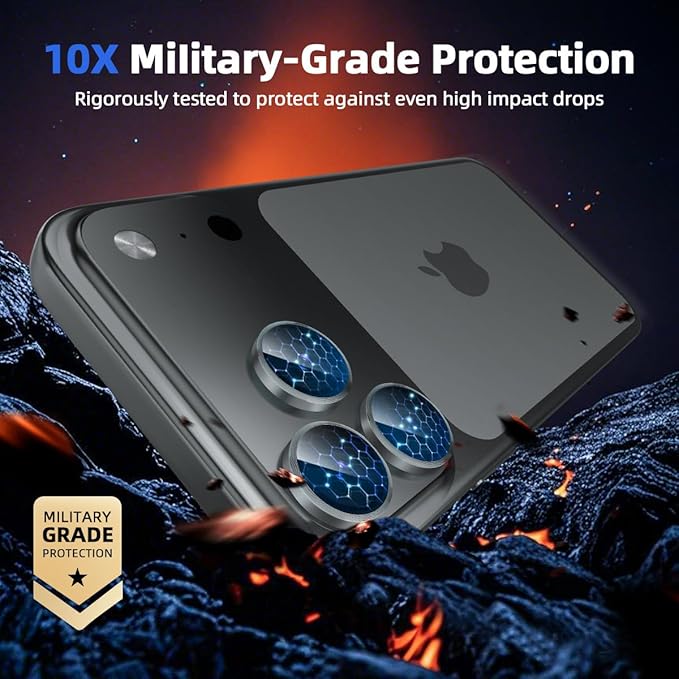【軍用規格保護】個々のレンズプロテクターは、プレミアム強化ガラスで作られており、日常の硬いものや鋭利なものに対する強力な耐傷性を備え、衝撃性の高い落下からもカメラを安全に保護します