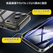 【カメラ、液晶画面は浮かせて保護】いPhone17Pro 本体の曲線に従って高低差設計になります。カメラレンズの周囲0.5mm高く、外部と直接接触の傷つきを避けます。カメラレンズをキズから保護できます。液晶画面より0.8mm高くなり、画面を保護同時に、ガラスフィルムに全く干渉しません。