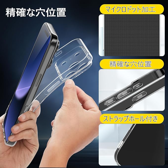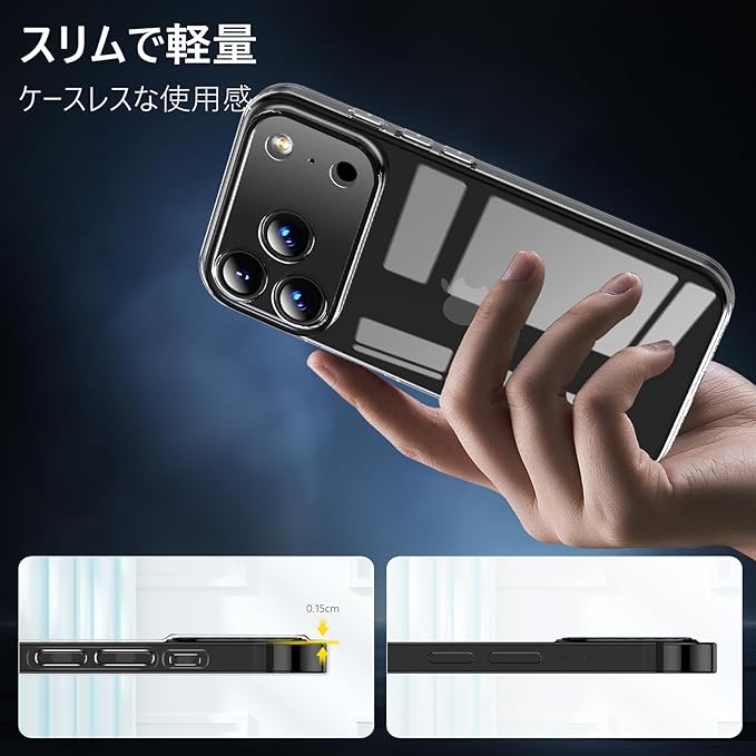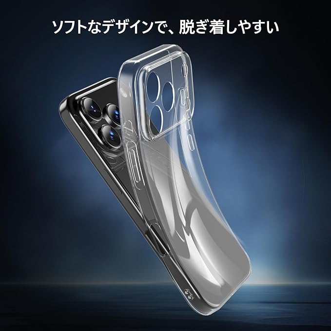 【透明感漂う・黄変防止】超精度の透光分子を持ち、背面の光透高透過率。環境に優しく、無毒無味の高品質素材採用して抗酸化処理が施されており、高い透明度を長期間維持します。厳選したTPU素材で、本来の崇高な美しさと高級感を損なわなく、いつものスマホに上品さをプラス!更に、余計な装飾も無くシンプルで完璧にアイホン17プロの上品さを忠実に再現。不覚にも見惚れてしまいます。