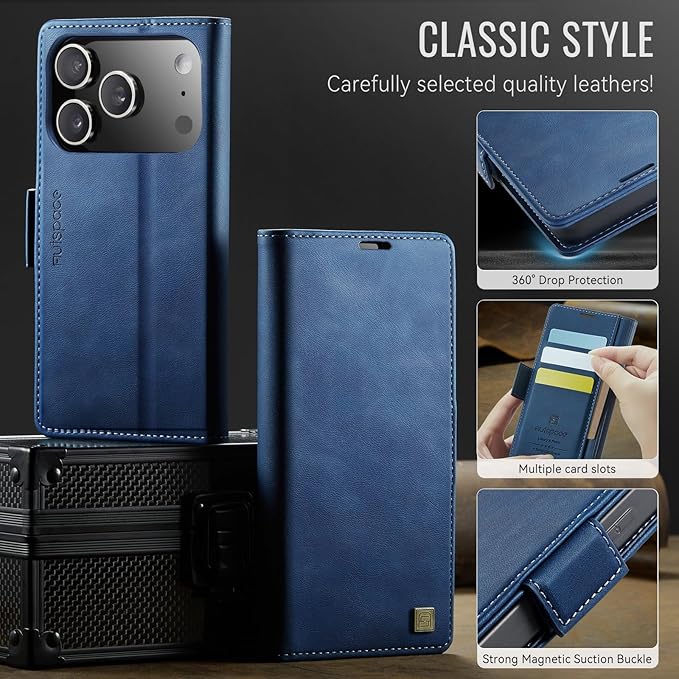iPhone17 Pro ケース 手帳型 アイホン17プロケース アイフォン17 Pro 携帯カバー RFID磁気防止 ワイヤレス充電対応 スマホケース 携帯ケース スマホカバー 柔軟なTPU内側 手触り良いレザー サイドマグネット式 カード収納 カード入れ スタンド機能 耐摩擦 耐久性アップ 全面保護 (iPhone 17 Pro 対応) ブルー