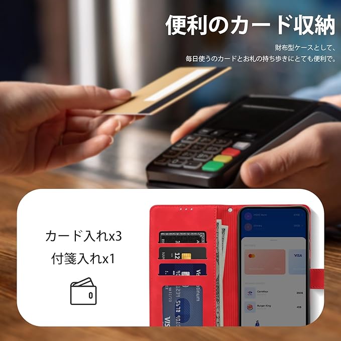 【CASAFUNY】 用の iphone17 Pro ケース 手帳型 人気 耐衝撃 高質PUレザー 携帯ケース アイフォン17pro ケース 手帳型 おしゃれ ビジネス風 携帯カバー シンプル お洒落 軽量 アイフォン17プロケース スマホケース カードポケット マグネット開閉式 スタンド機能 6.3インチ対応(レッド)
