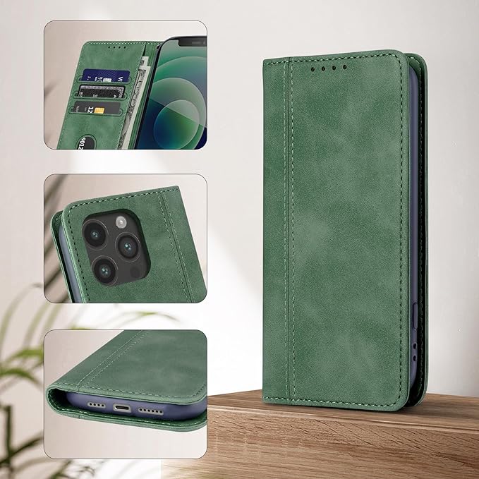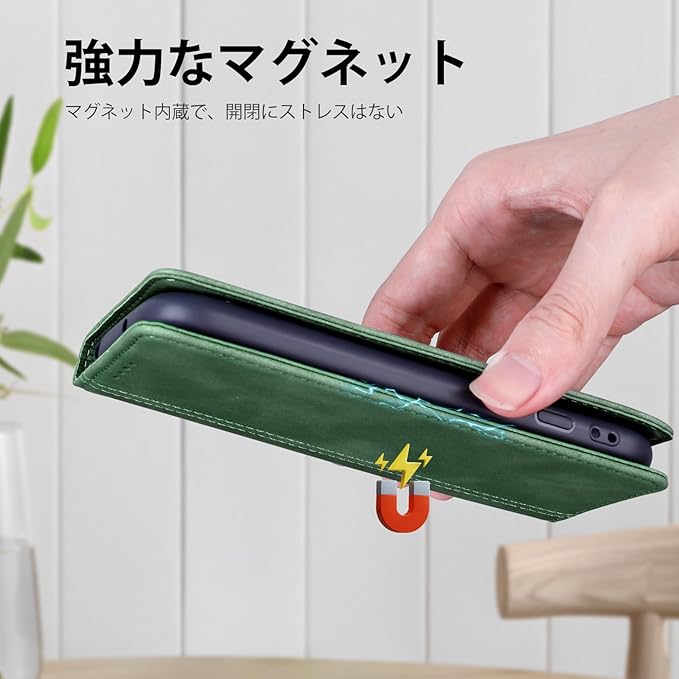 laddutoi 適用 iphone 17 proケース iphone 17 pro ケース 軽量 薄い PU レザー マグネット カード収納 耐衝撃 スタンド 手作り 持ちやすい 滑り止め すり傷防止マグネット 横置きスタンド機能 財布型 落ち着いた色 お洒落 カバー 落下防止 手触り良い-グリーン