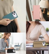 【性能抜群】横置きスタンド機能が付いて、好きな角度で動画鑑賞や読書などを楽しめます。内側には三つのカード入れとフリーポケットが付き、名刺や定期券の収納に優れています。そして、簡単に開け閉めができるから、片手で開きたい方にもとても便利です。ワイヤレス充電も対応できます。