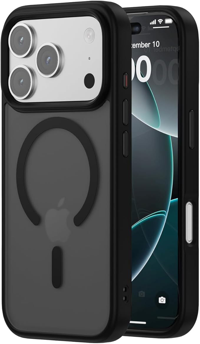 【MagSafe対応】iYiTai iPhone 17 Pro 用 ケース 6.3 インチ 2重構造 [TPU+PC] ワイヤレス充電対応 マグネット搭載 ストラップホール付き 神秘的な肌感 耐衝撃 指紋防止 黄変防止 アイフォン17 プロ カバー (マット・ブラック)