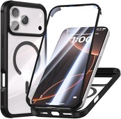 【両面!Magsafe対応!】McDuLL iPhone 17 Pro 用 ケース 6.3 インチ 360度保護 9H強化ガラス+PC素材+TPUバンパー 耐衝撃性 擦り傷防止 薄型 ワイヤレス充電対応 軽量 落下防止 指紋防止 アイフォン 17 プロ 用 カバー (ブラック)