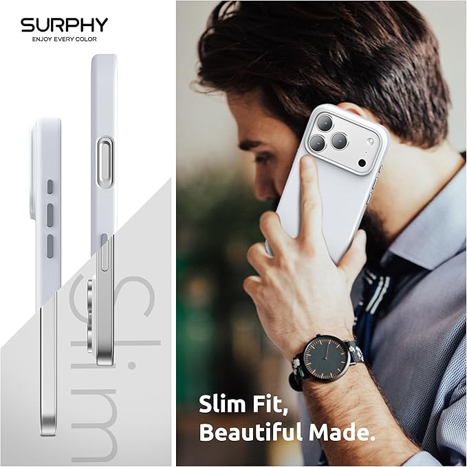 SURPHY iPhone 17 Pro 用ケース レザー MagSafe対応,6.3インチ対応(2025) スマホケース iphone 17 Pro PUレザー マグネット搭載 内側はマイクロファイバーが付く (ライトグレー)