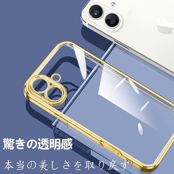 ONETIAOLONG iPhone17 用のケース クリア アイフォン17 用の カバー 透明 スマホケース 耐衝撃 軽量 メッキ加工 TPU 薄型 ストラップホール付き 滑り止め 落下防止 6.3インチ(ゴールド)